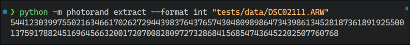 A truly random number, generated from a RAW photo using the photorand CLI utility.